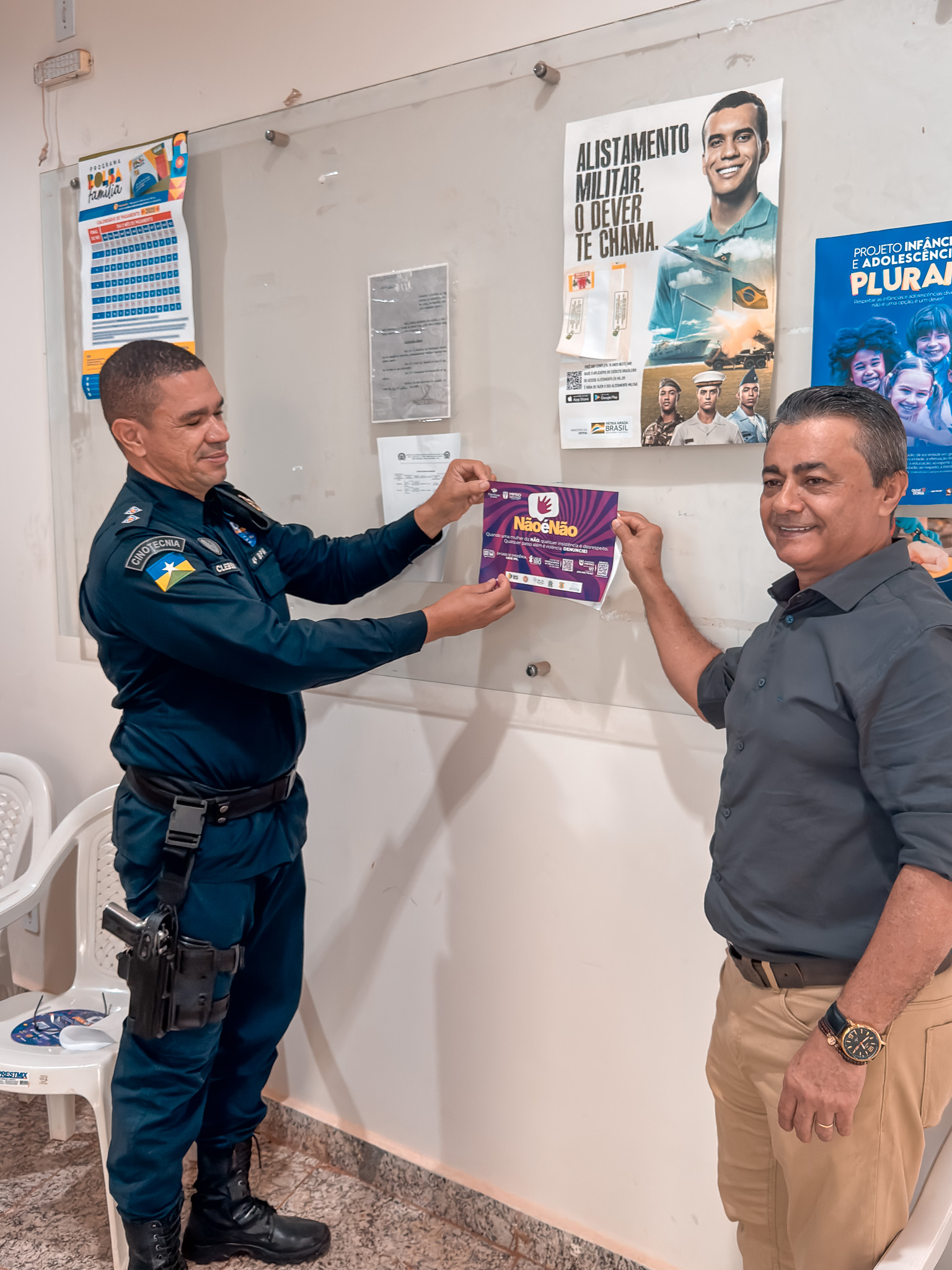 Após a reunião, os participantes se mobilizaram para fixar cartazes da campanha em locais estratégicos, com o objetivo de disseminar a mensagem de que a violência contra a mulher não pode ser tolerada.