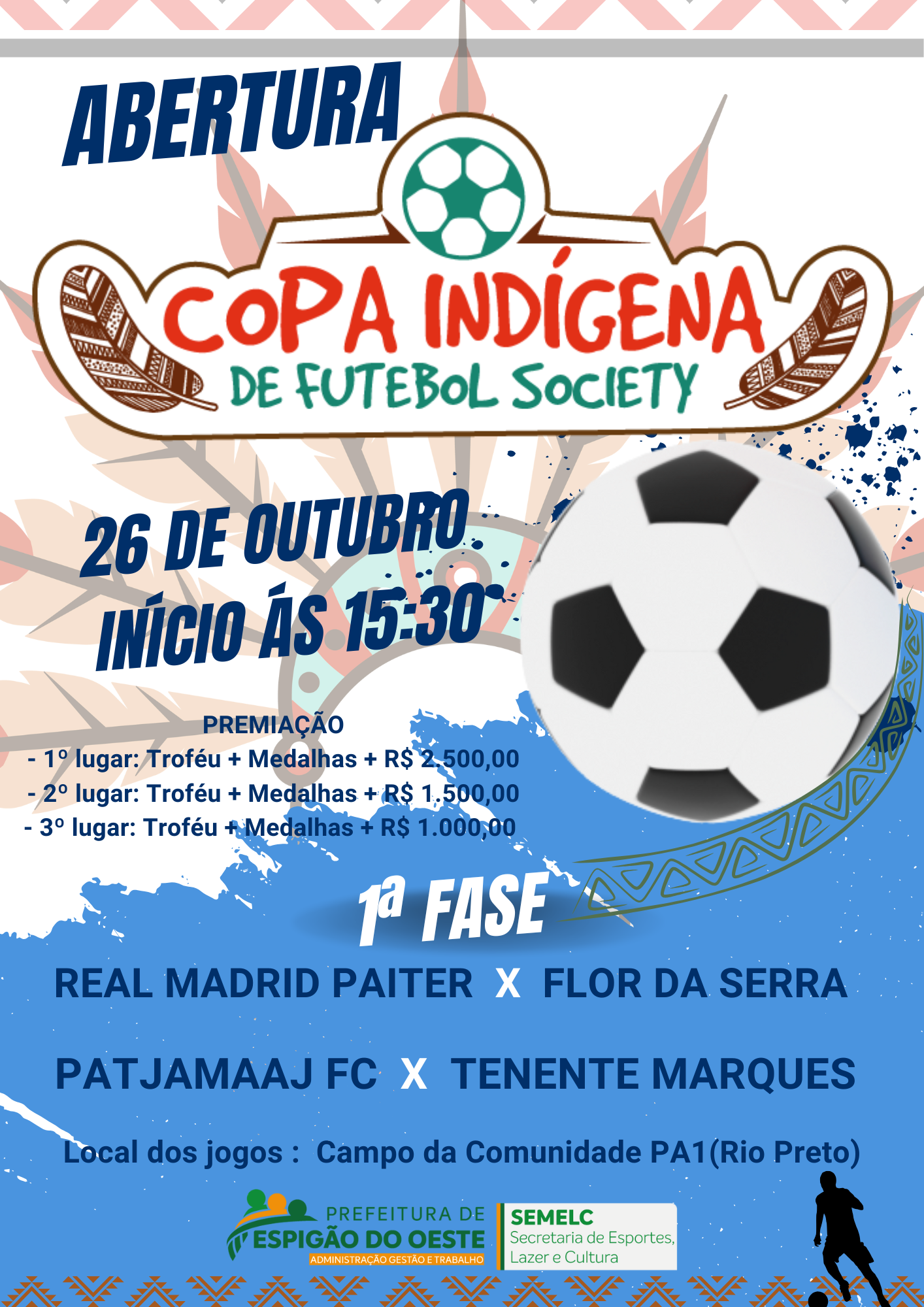 Neste domingo, 26 de outubro, a Prefeitura de Espigão do Oeste, por meio da SEMELC, realiza a abertura oficial da Copa Indígena de Futebol Society em um evento que promete celebrar esporte, cultura e tradição do...