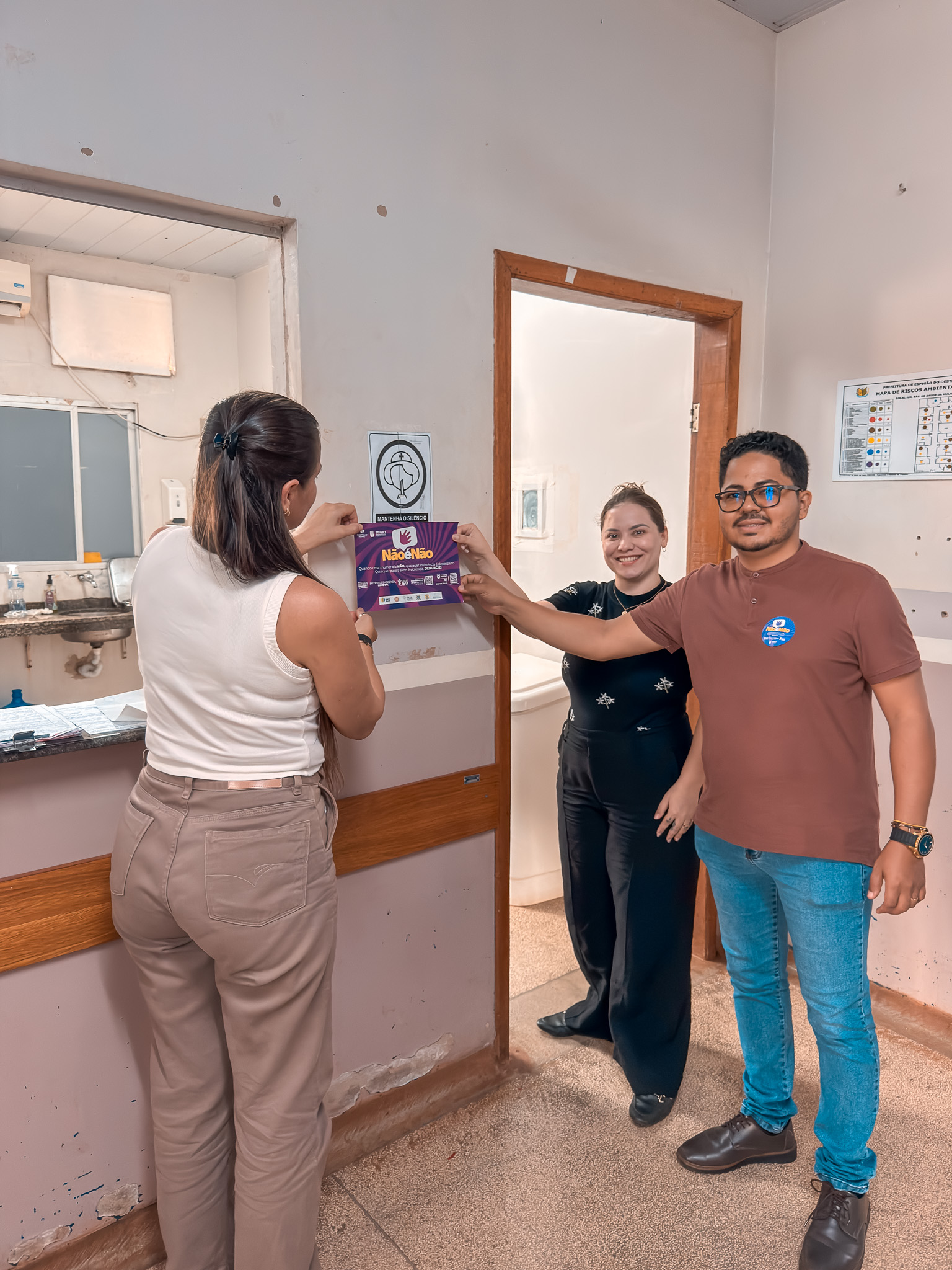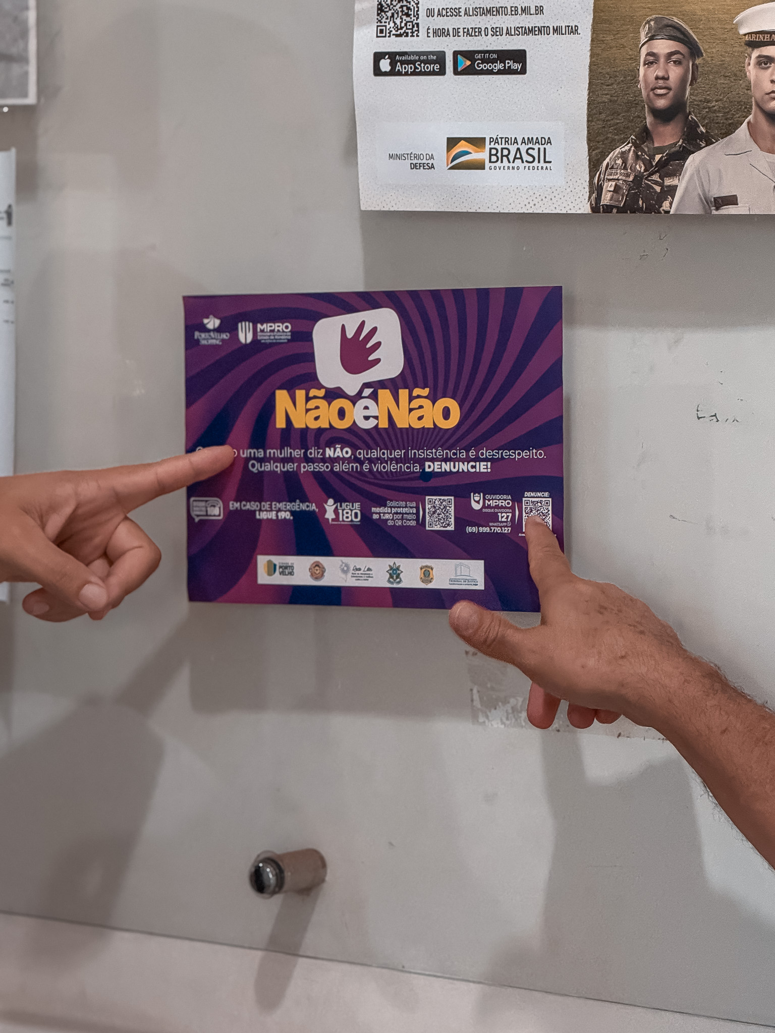 Após a reunião, os participantes se mobilizaram para fixar cartazes da campanha em locais estratégicos, com o objetivo de disseminar a mensagem de que a violência contra a mulher não pode ser tolerada.
