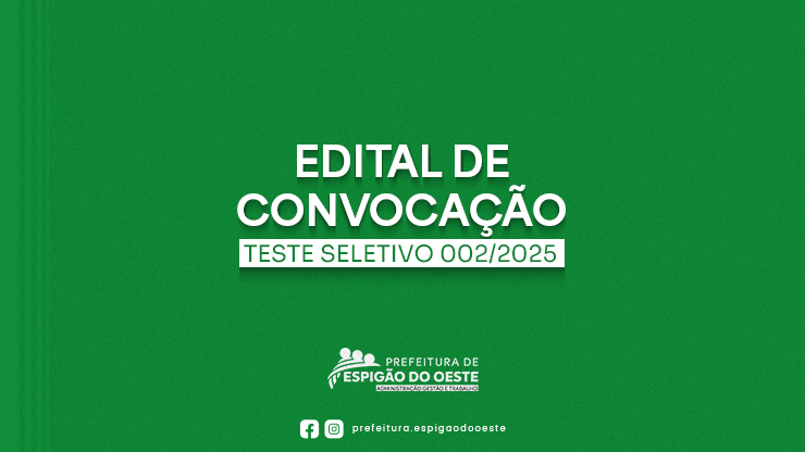 O PREFEITO DO MUNICÍPIO DE ESPIGÃO DO OESTE, no uso de suas atribuições legais,considerando o não comparecimento de convocado através da convocação 067/2025 as necessidades